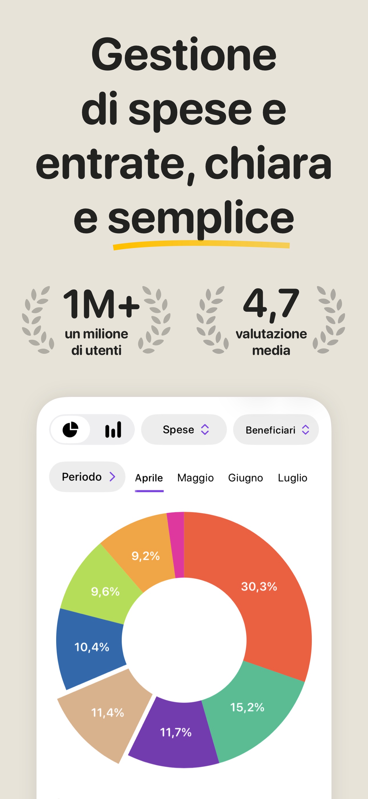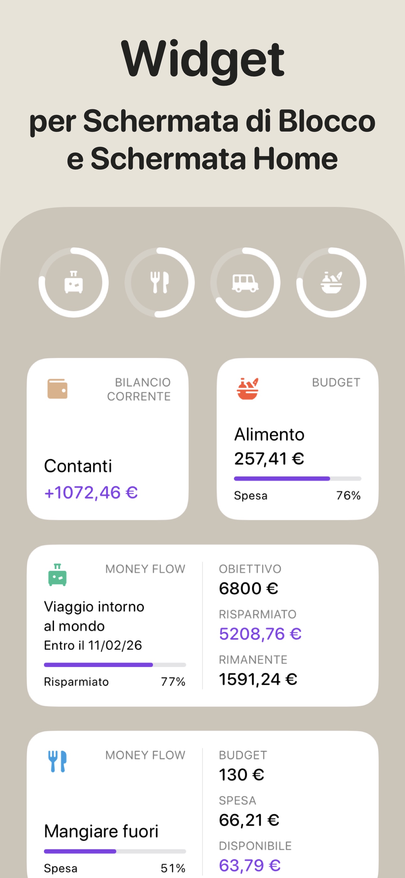 Applicazione per il monitoraggio rapido delle tue spese e entrate e per il controllo della tua situazione finanziaria.